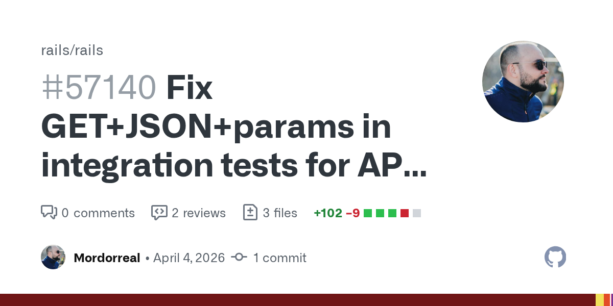 Fix GET+JSON+params in integration tests for API-only apps by Mordorreal · Pull Request #57140 · rails/rails